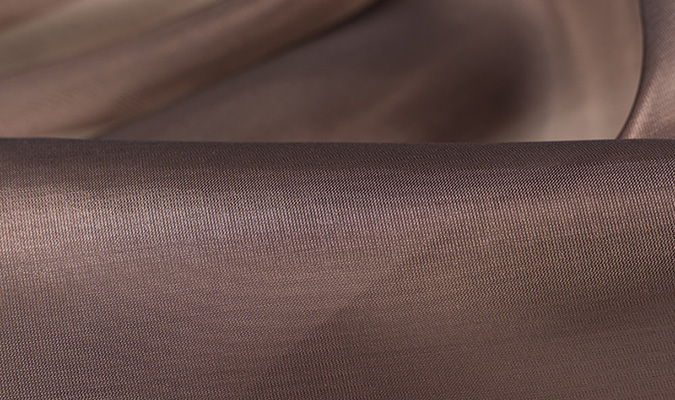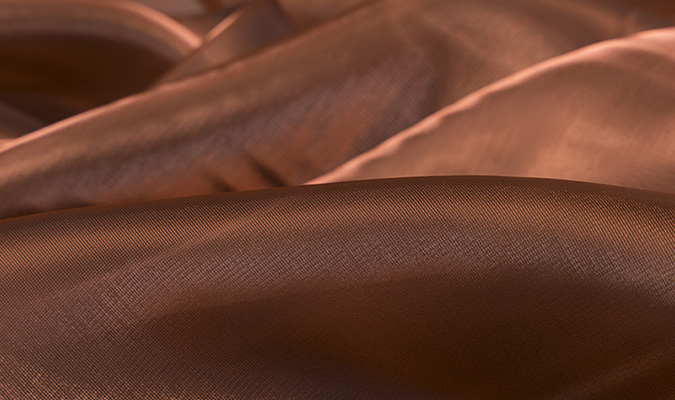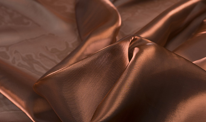 Materiał posiada wyraźny, mieniący się połysk. Niektóre kolory mienią się w dwóch odcieniach.